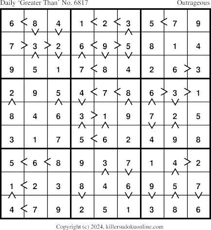 Weekly “Greater Than” Killer sudoku for week starting 12/9/2024