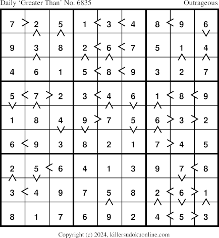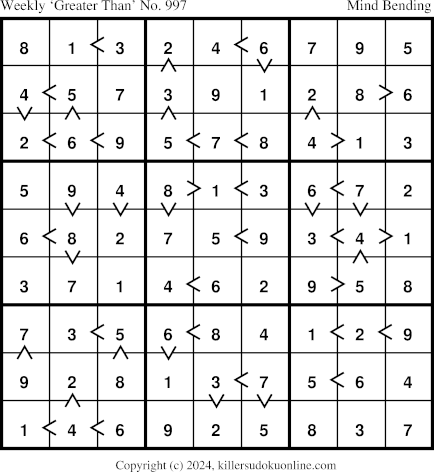 Weekly “Greater Than” Sudoku for week starting 12/30/2024