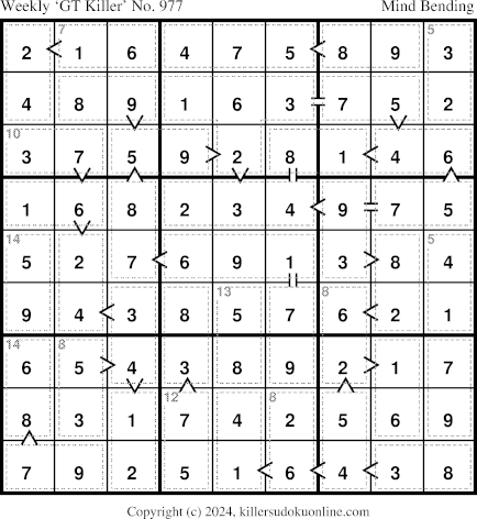 Weekly “Greater Than” Killer sudoku for week starting 12/30/2024