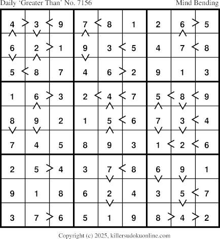 Weekly “Greater Than” Killer sudoku for week starting 11/10/2025