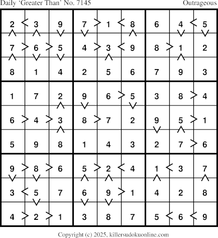 Weekly “Greater Than” Killer sudoku for week starting 11/3/2025