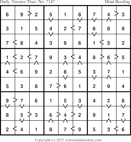 Weekly “Greater Than” Killer sudoku for week starting 11/3/2025