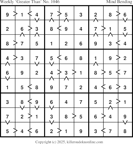 Weekly “Greater Than” Killer sudoku for week starting 12/8/2025