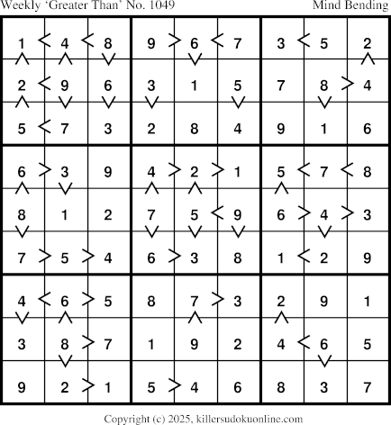 Weekly “Greater Than” Killer sudoku for week starting 12/29/2025