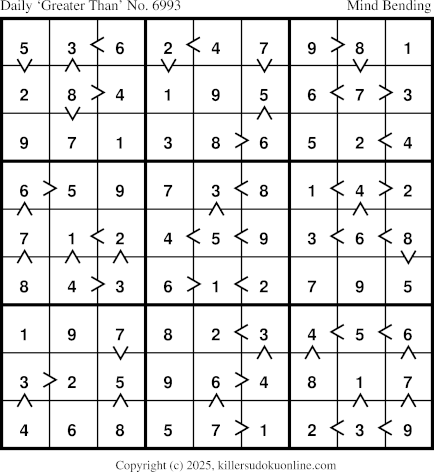 Weekly “Greater Than” Killer sudoku for week starting 6/2/2025