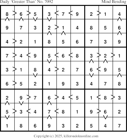 Weekly “Greater Than” Killer sudoku for week starting 9/8/2025