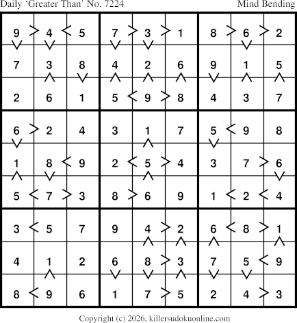 Weekly “Greater Than” Sudoku for week starting 1/19/2026