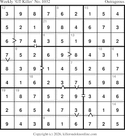 Weekly “Greater Than” Killer sudoku for week starting 1/26/2026
