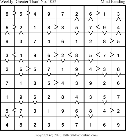 Weekly “Greater Than” Sudoku for week starting 1/26/2026
