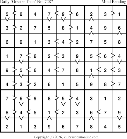 Weekly “Greater Than” Killer sudoku for week starting 3/23/2026