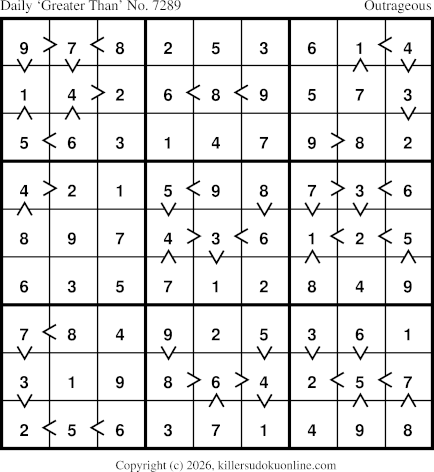 Weekly “Greater Than” Killer sudoku for week starting 3/30/2026