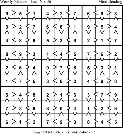 Weekly “Greater Than” Killer sudoku for week starting 9/25/2006