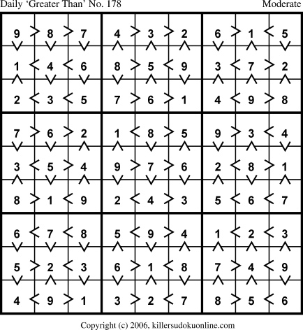 Weekly “Greater Than” Sudoku for week starting 10/16/2006