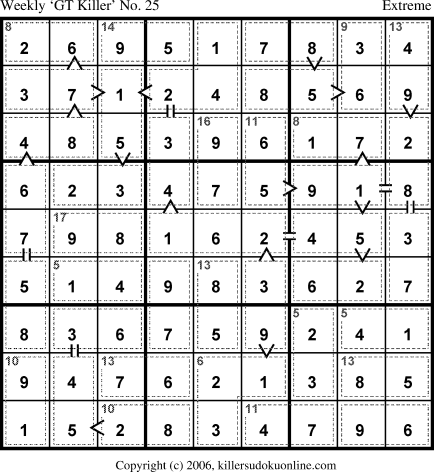 Weekly “Greater Than” Killer sudoku for week starting 10/2/2006