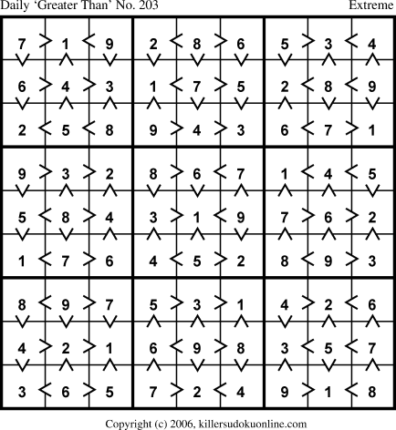 Weekly “Greater Than” Sudoku for week starting 11/6/2006