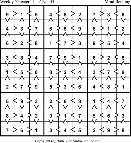 Weekly “Greater Than” Killer sudoku for week starting 11/27/2006