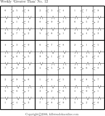Weekly “Greater Than” Sudoku for week starting 4/10/2006