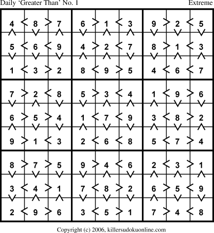 Weekly “Greater Than” Sudoku for week starting 4/17/2006