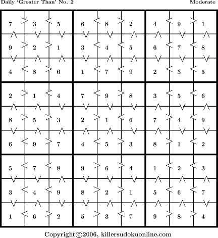 Weekly “Greater Than” Killer sudoku for week starting 4/24/2006