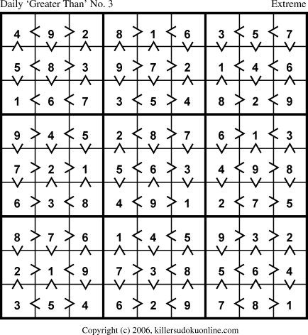 Weekly “Greater Than” Sudoku for week starting 4/24/2006