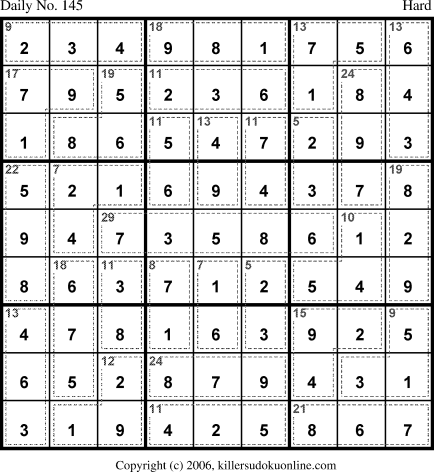 Weekly “Greater Than” Killer sudoku for week starting 5/15/2006