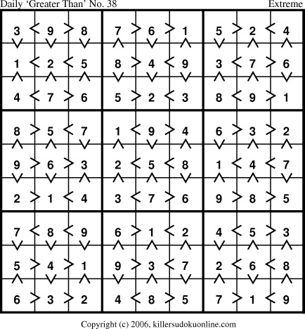 Weekly “Greater Than” Sudoku for week starting 5/29/2006