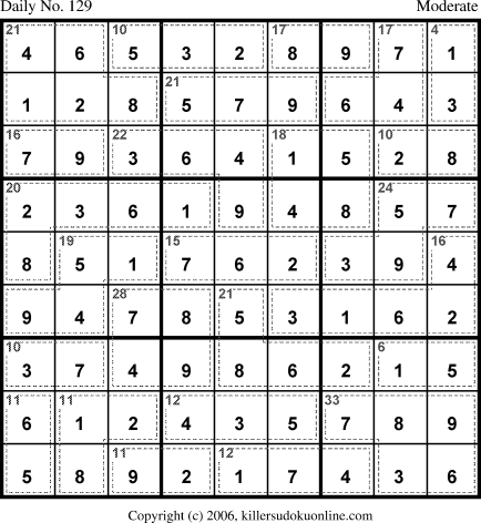 Weekly “Greater Than” Killer sudoku for week starting 5/1/2006