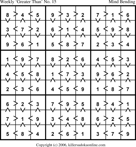Weekly “Greater Than” Sudoku for week starting 5/1/2006