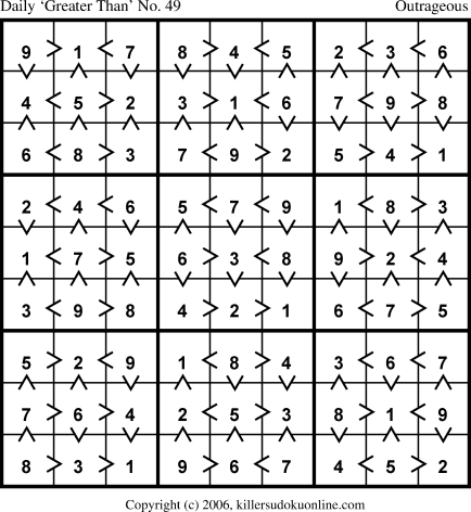 Daily “Greater Than” Sudoku for 6/10/2006