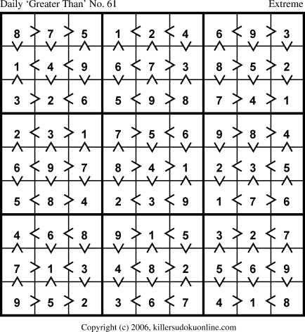 Weekly “Greater Than” Sudoku for week starting 6/19/2006