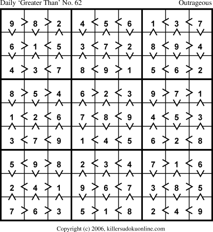 Daily “Greater Than” Sudoku for 6/23/2006