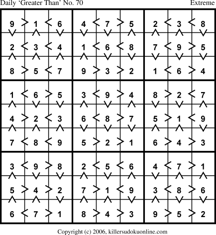 Daily “Greater Than” Sudoku for 7/1/2006