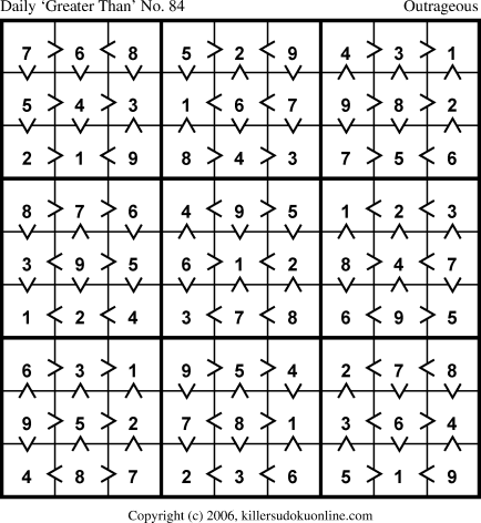 Weekly “Greater Than” Sudoku for week starting 7/10/2006
