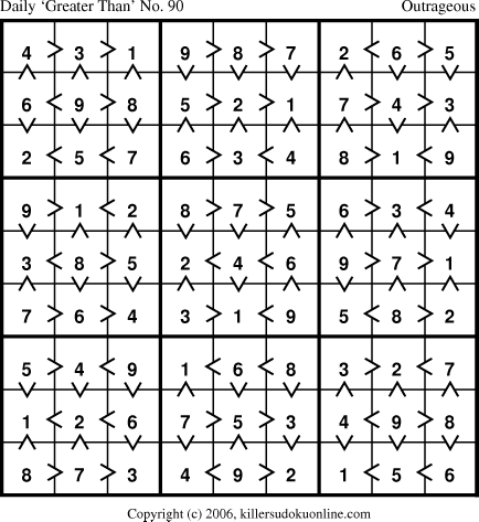 Weekly “Greater Than” Killer sudoku for week starting 7/17/2006