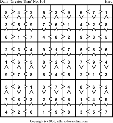 Daily “Greater Than” Sudoku for 8/1/2006