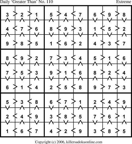 Daily “Greater Than” Sudoku for 8/10/2006