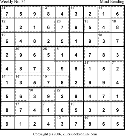 Weekly “Greater Than” Killer sudoku for week starting 8/28/2006