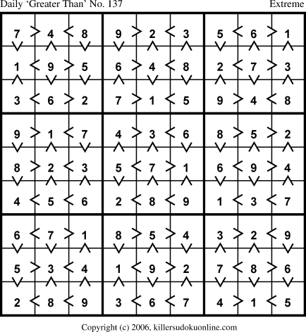 Weekly “Greater Than” Sudoku for week starting 9/4/2006