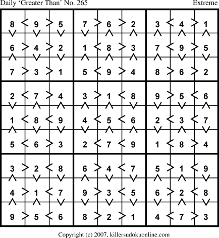 Weekly “Greater Than” Sudoku for week starting 1/8/2007