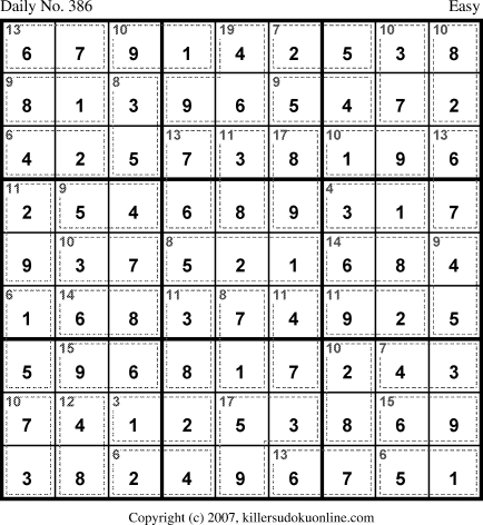 Weekly Killer Sudoku for week starting 1/15/2007