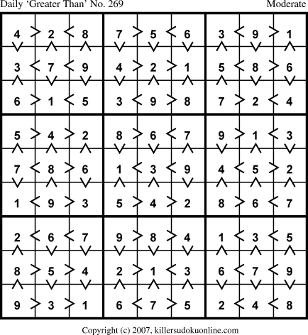 Weekly “Greater Than” Sudoku for week starting 1/15/2007