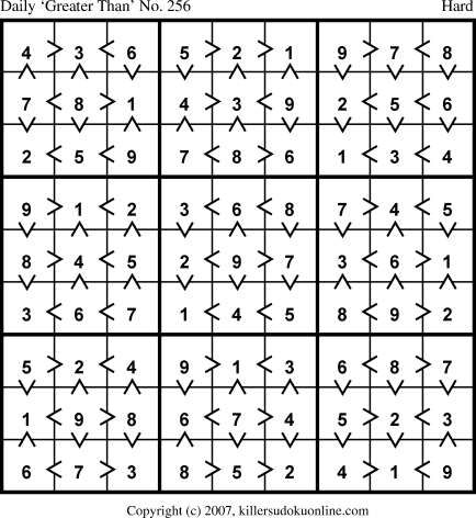 Weekly “Greater Than” Sudoku for week starting 1/1/2007