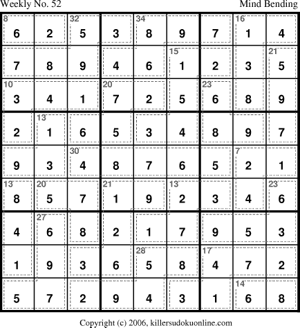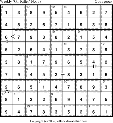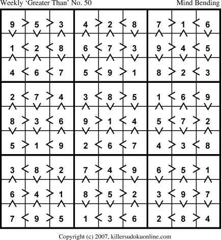 Weekly “Greater Than” Killer sudoku for week starting 1/1/2007