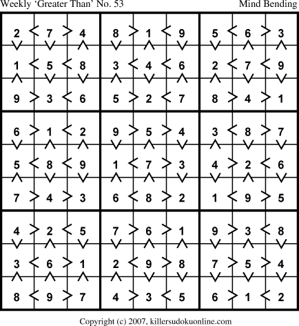 Weekly “Greater Than” Sudoku for week starting 1/22/2007