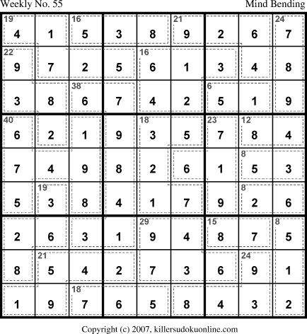 Weekly “Greater Than” Killer sudoku for week starting 1/22/2007