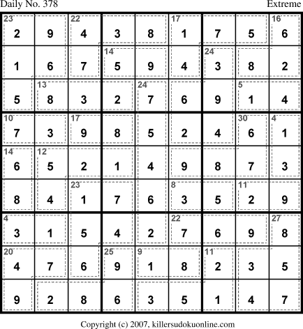 Weekly Killer Sudoku for week starting 1/1/2007