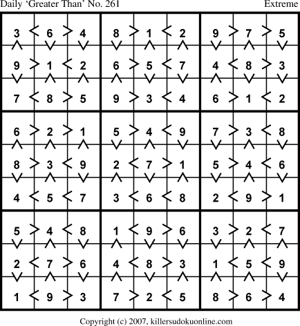 Daily “Greater Than” Sudoku for 1/7/2007