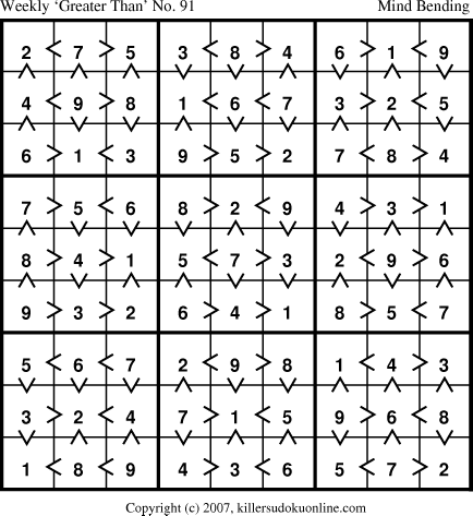 Weekly “Greater Than” Sudoku for week starting 10/15/2007