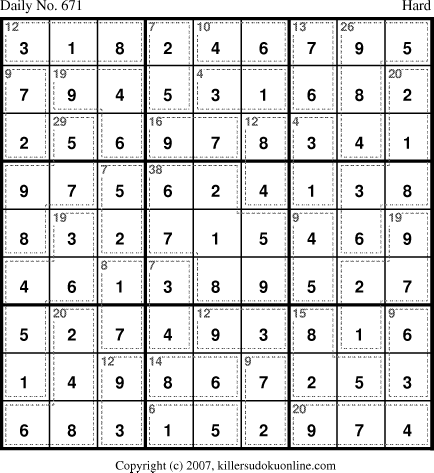 Weekly “Greater Than” Killer sudoku for week starting 10/22/2007