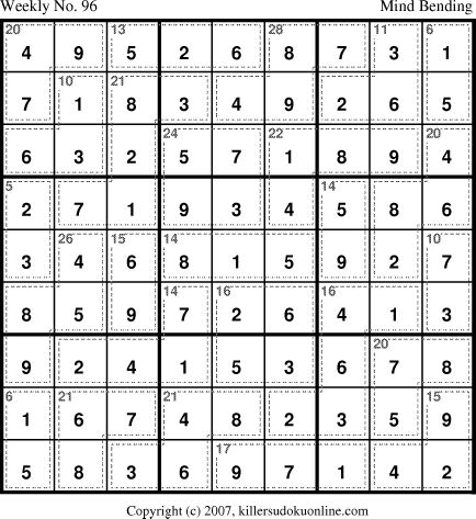 Weekly “Greater Than” Killer sudoku for week starting 11/5/2007